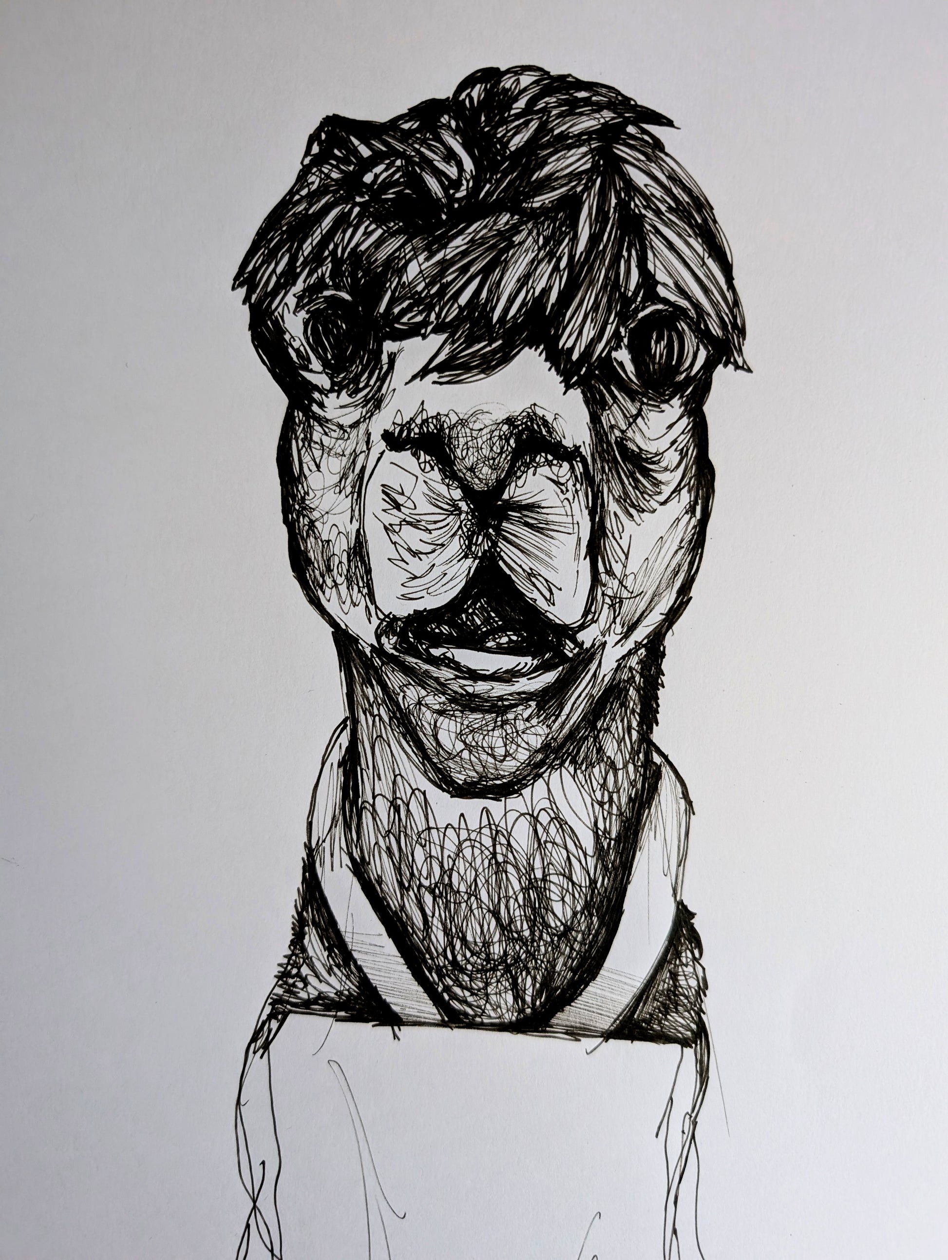 This quirky Llama wearing a wig, pulling a funny face, and donning an apron is sure to add some unique charm to your home. The detailed pen illustration is sketched on an A4 size paper and comes unframed. A playful addition to any art collection.