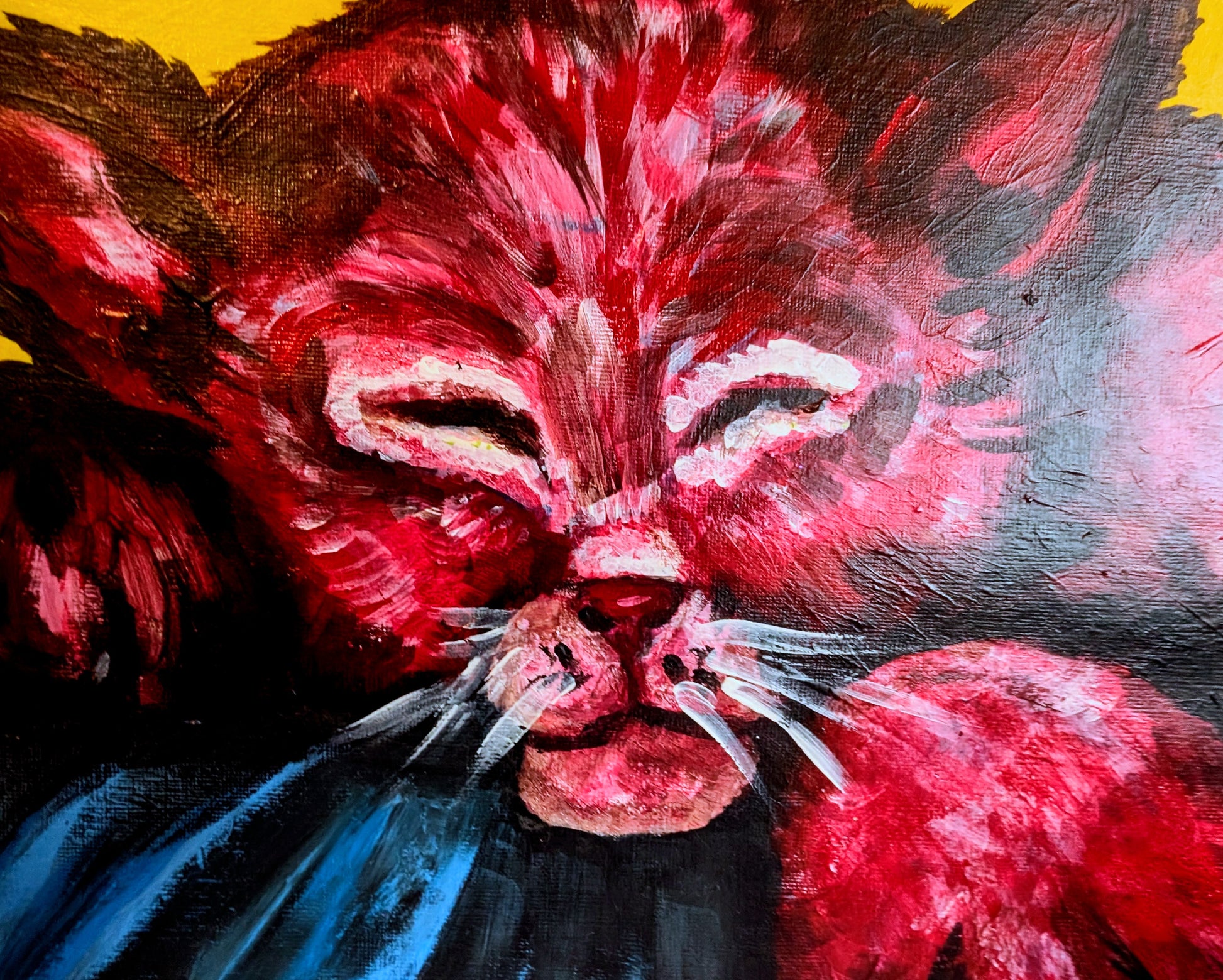Pink Cat Sleeping With Blue Blanket Yellow Background Painting Acrylic Paint Art A3 Size Unframed