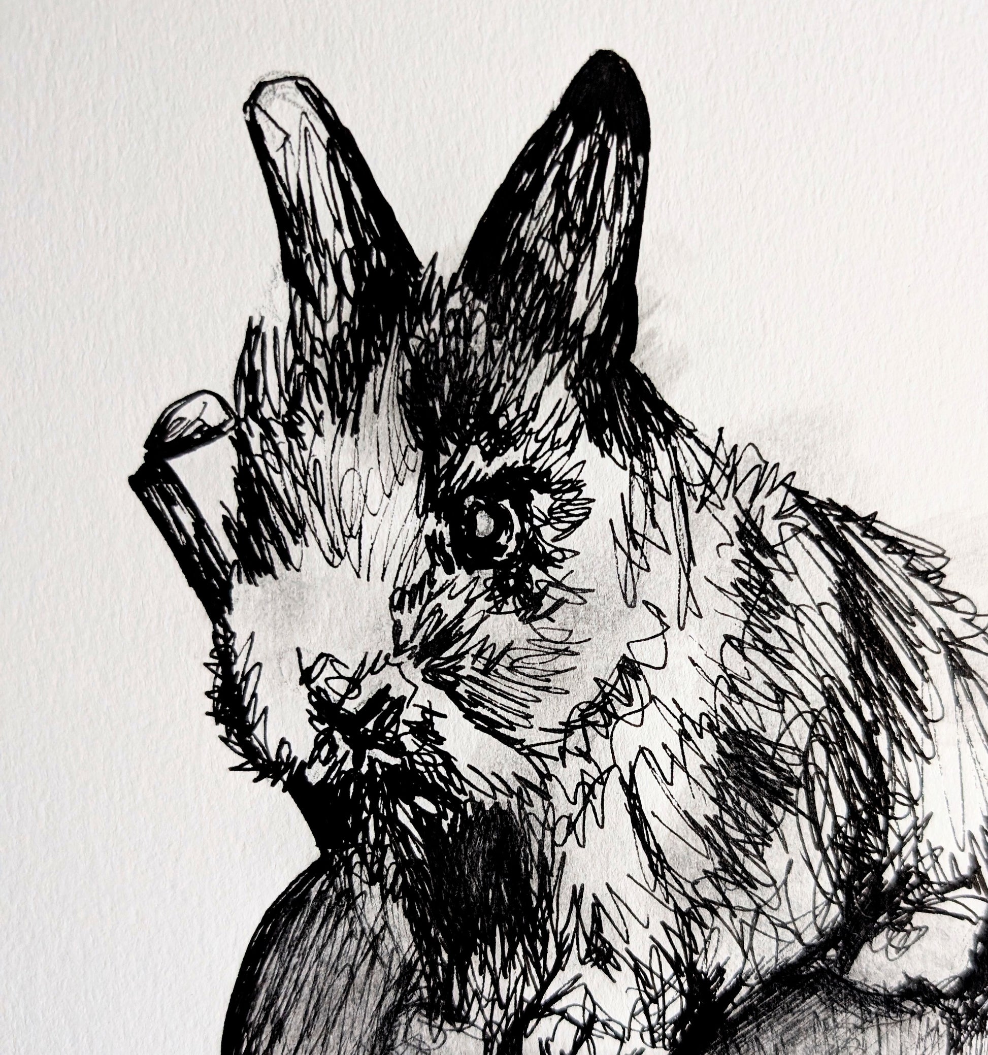 Rabbit Bunny With Bitten Apple Pen Illustration Drawing Sketch Art Portrait Unframed A4 Size